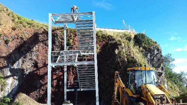 Ligação pedonal - colocação de escadas – da Avenida Diogo de Teive e do Porto das Poças: Obra já em curso adjudicada à empresa Marcometal II, Construções e Comércio de Produtos Metálicos, Lda. pelo valor de € 34.972,84. |