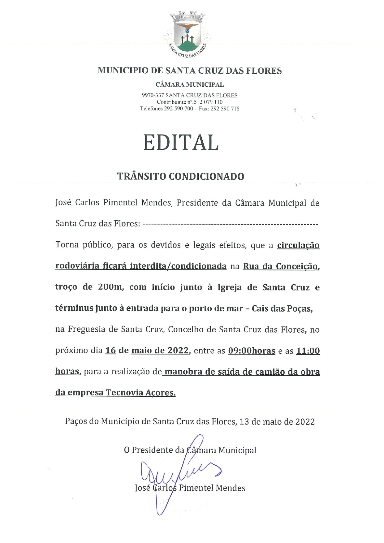 Aviso - Trânsito Condicionado - Rua da Conceição