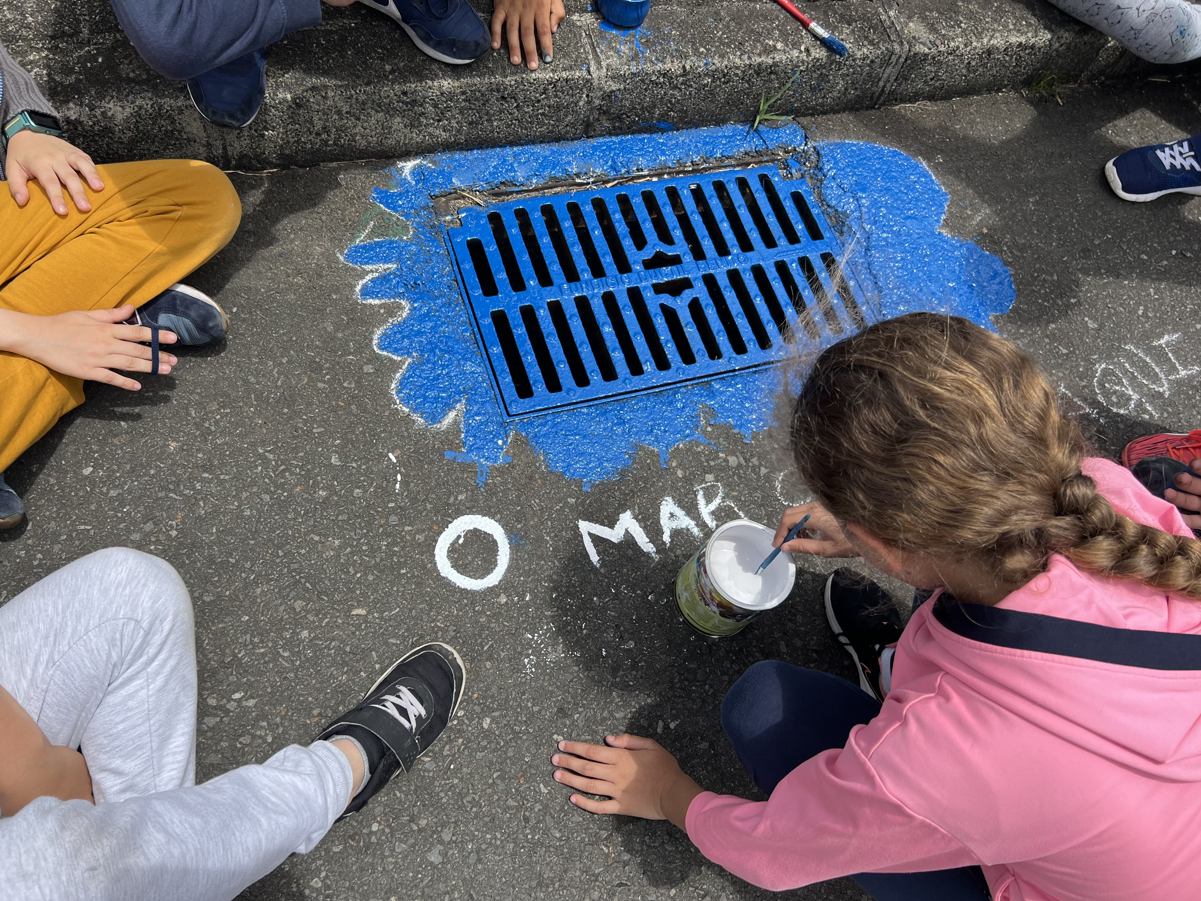 Esta atividade contou com a participação das turmas do jardim de infância e da primária do polo de Santa Cruz da Escola Básica e Secundária das Flores, que desenharam e pintaram diversas sarjetas junto à escola.