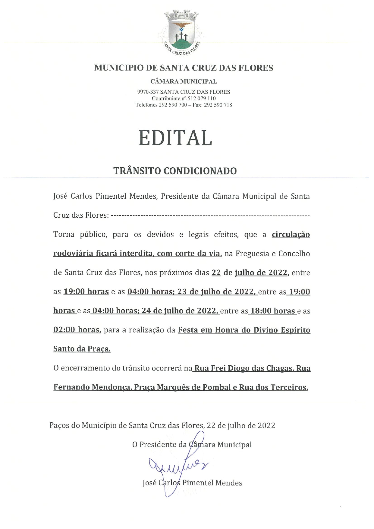 Aviso - Trânsito Condicionado em Santa Cruz - Festa do Divino Espírito Santo da Praça
