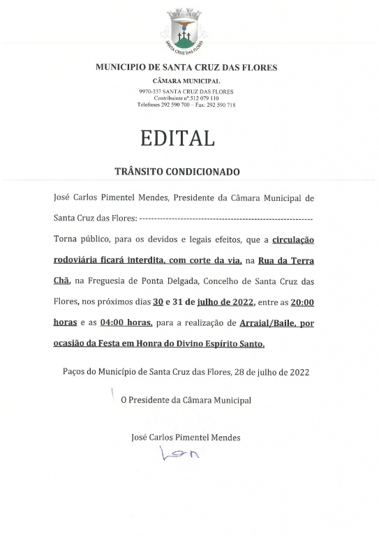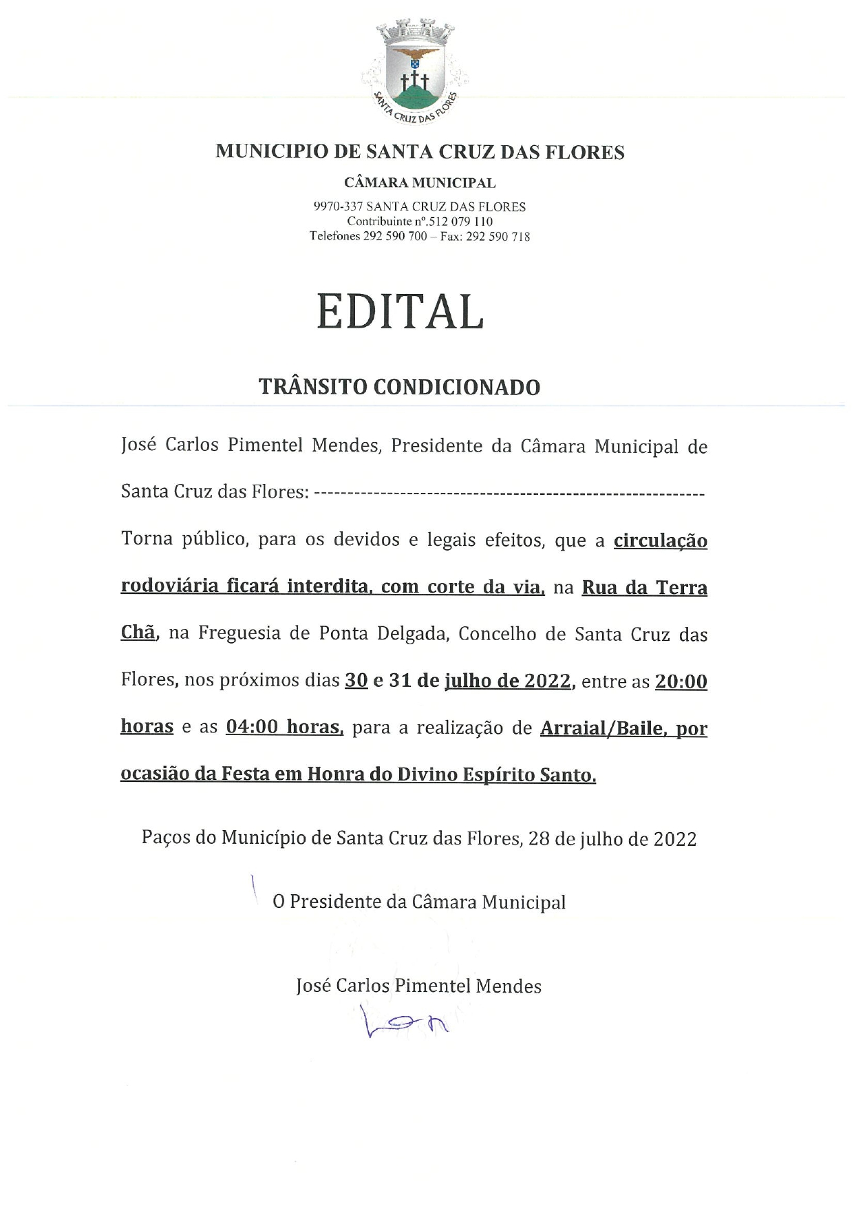 Aviso - Trânsito Condicionado em Ponta Delgada - Festa do Divino Espírito Santo da Terra Chã