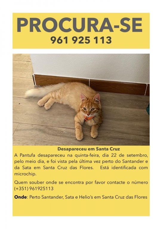 Apelo Externo - Procura-se gato em Santa Cruz das Flores