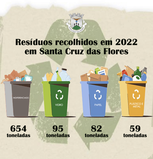 No ano de 2022, a Câmara Municipal de Santa Cruz das Flores recolheu 998 toneladas de resíduos sólidos urbanos, das quais 82 toneladas foram de papel e cartão, 95 de vidro e 59 de plástico e metal, perfazendo uma taxa de recolha seletiva de 35%. Assim, face ao ano anterior, registou-se um aumento de 3%.