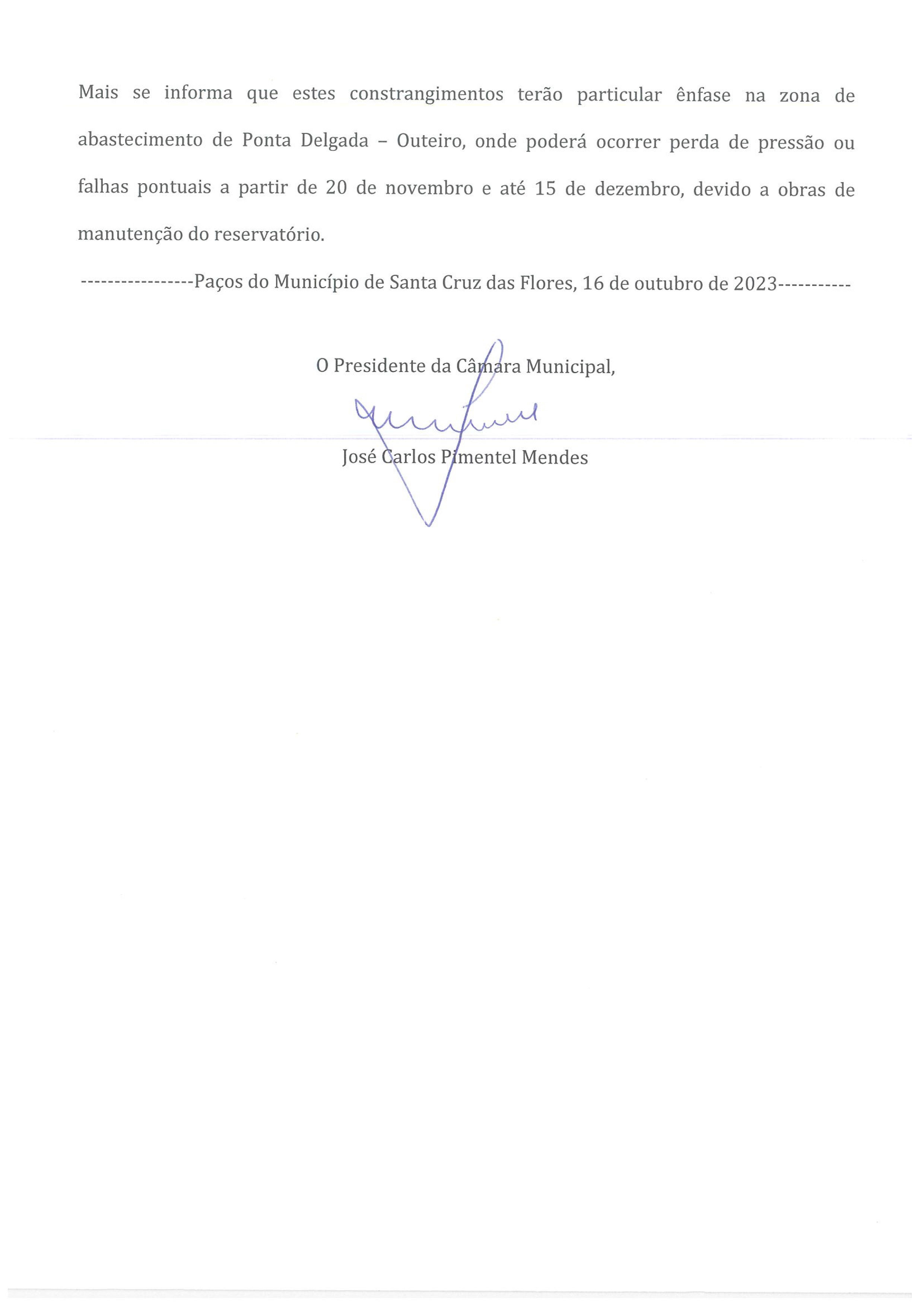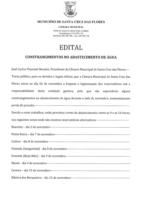 Edital - Constrangimento no abastecimento de água