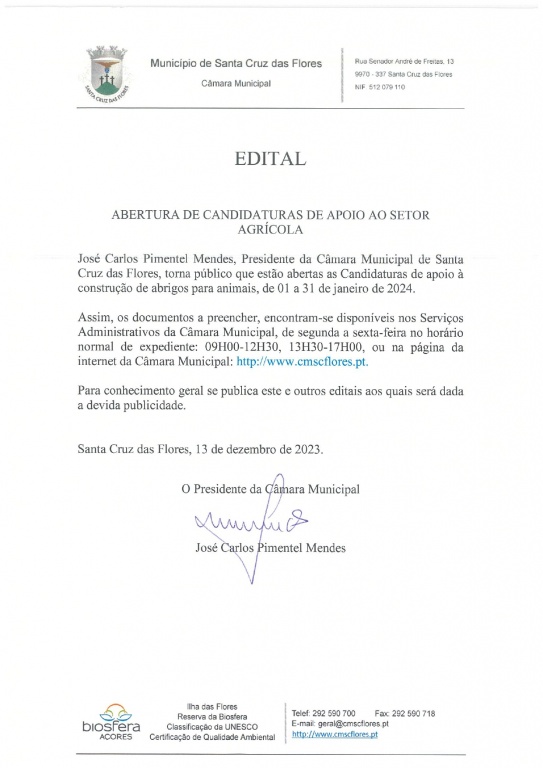 Edital - Candidaturas de apoio ao setor agrícola