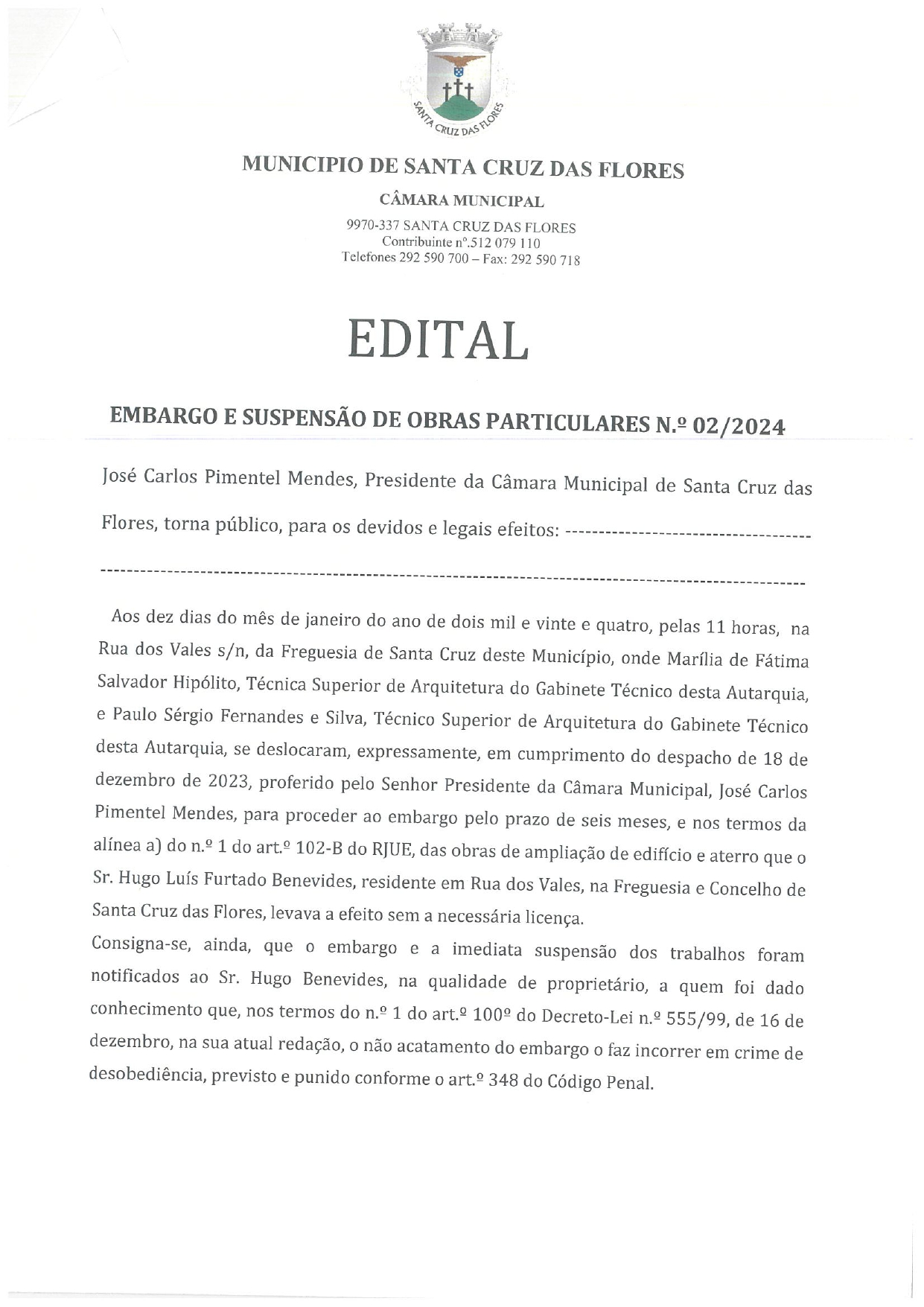 Câmara Municipal de Santa Cruz das Flores
