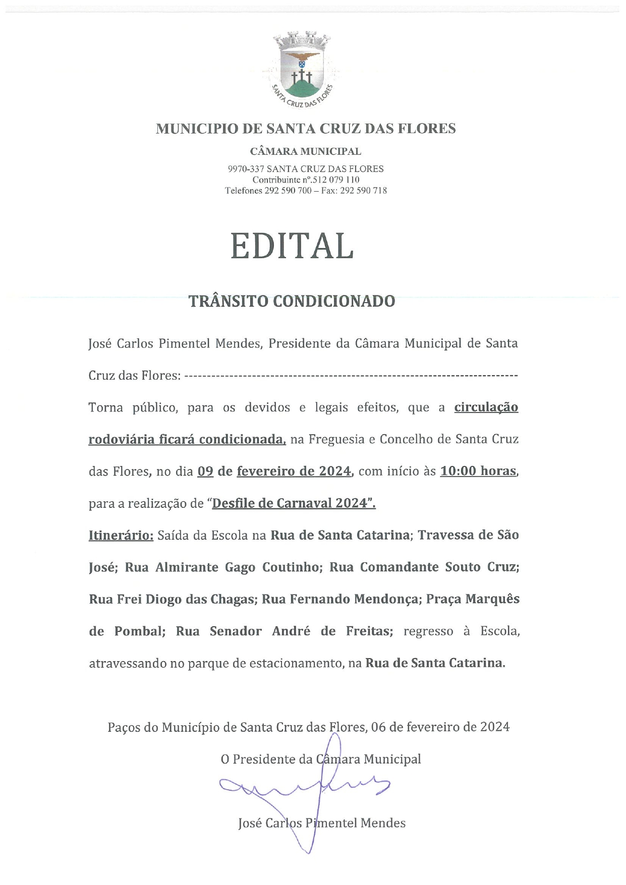 Edital - Trânsito condicionado dia 09 de fevereiro