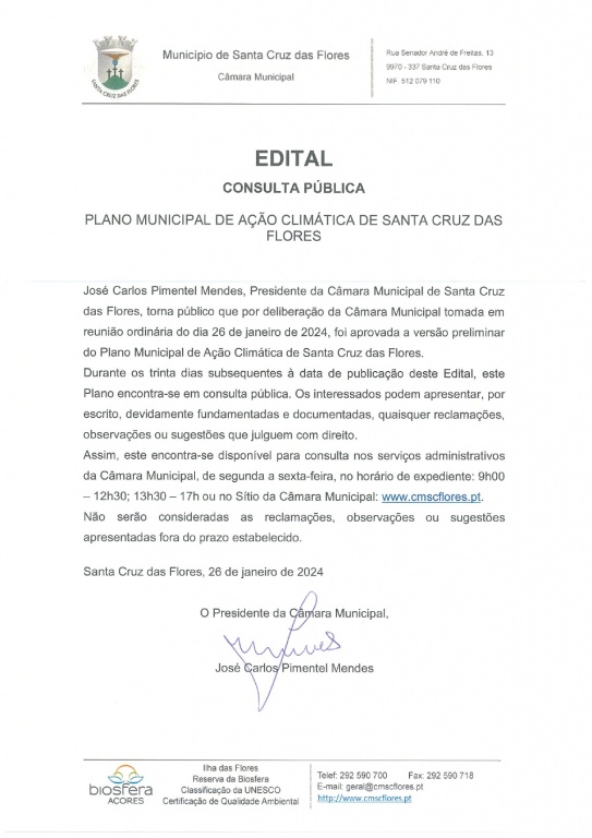 Plano Municipal de Ação Climática de Santa Cruz das Flores