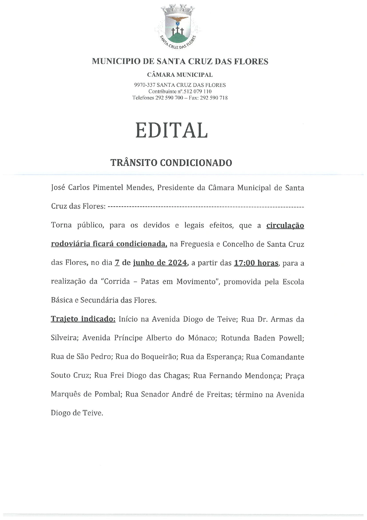 Edital - Ocupação da Via / Trânsito condicionado dia 7 de junho a partir das 17h