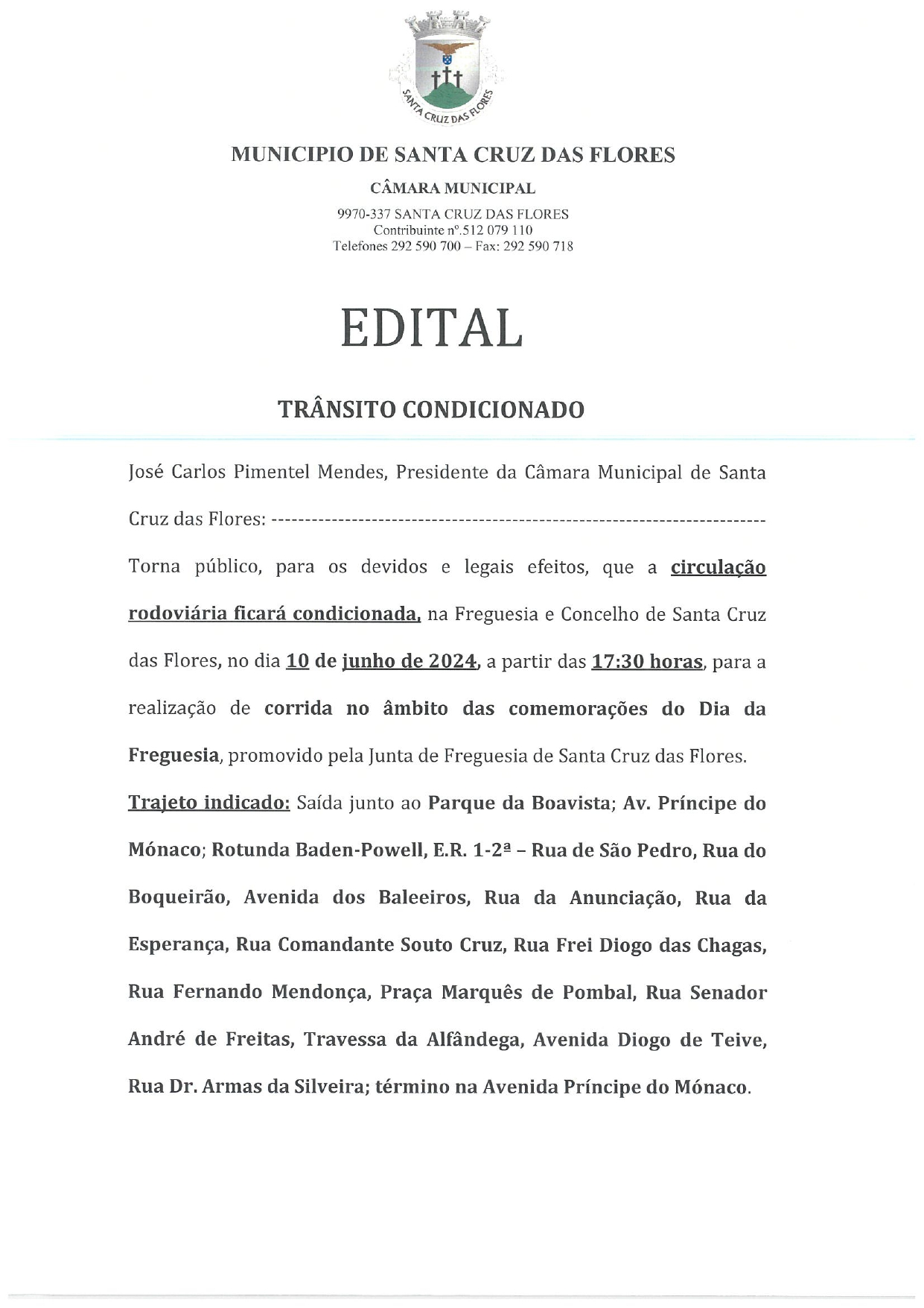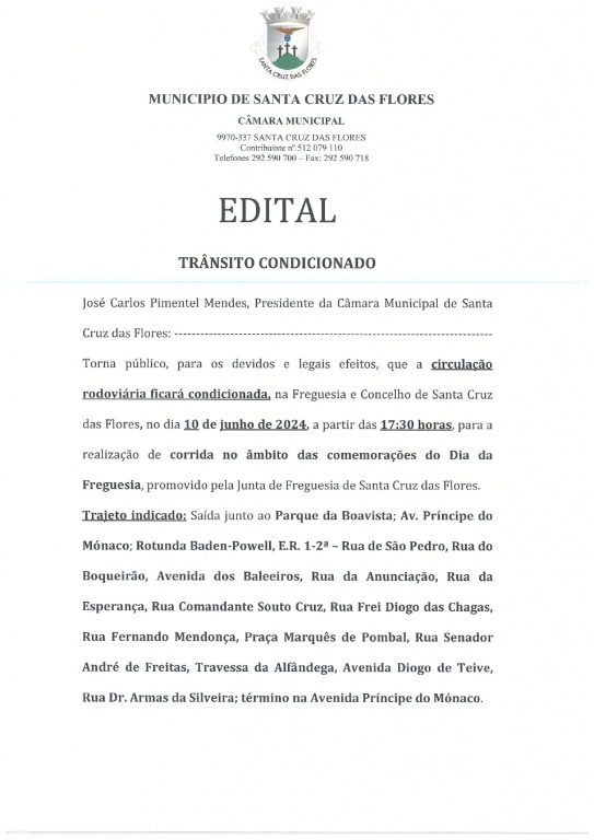 Edital - Ocupação da Via / Trânsito condicionado dia 10 de junho a partir das 17:30h