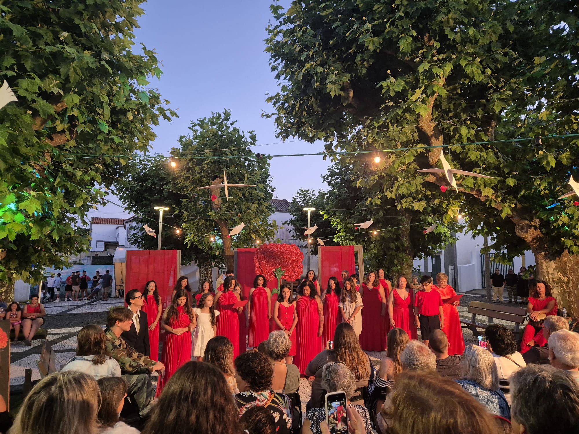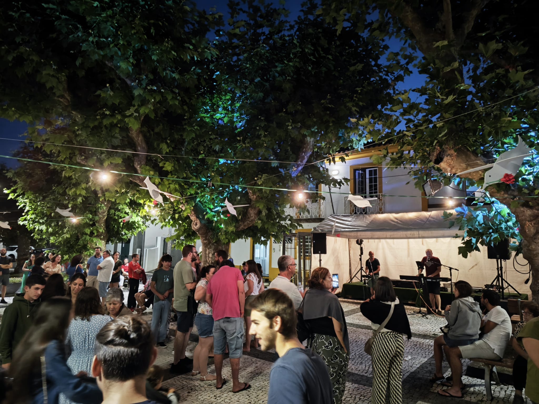 Após o espetáculo teatral, a praça foi tomada por alegria e animação musical com a banda ” Full K ords”, que mais uma vez animou as noites de Verão com sua música e energia.