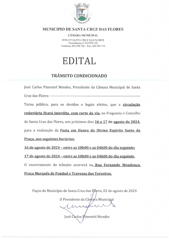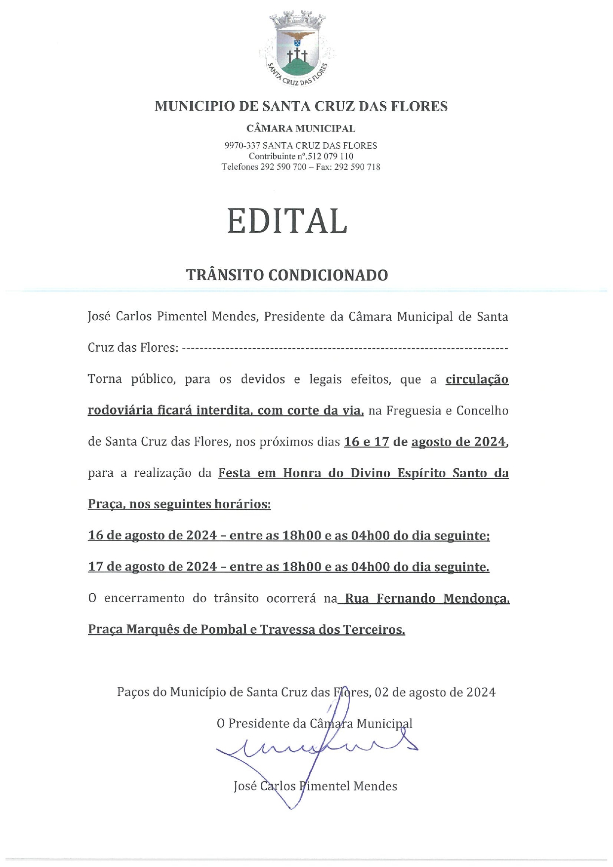 Edital - Trânsito condicionado dia 16 e 17 de agosto