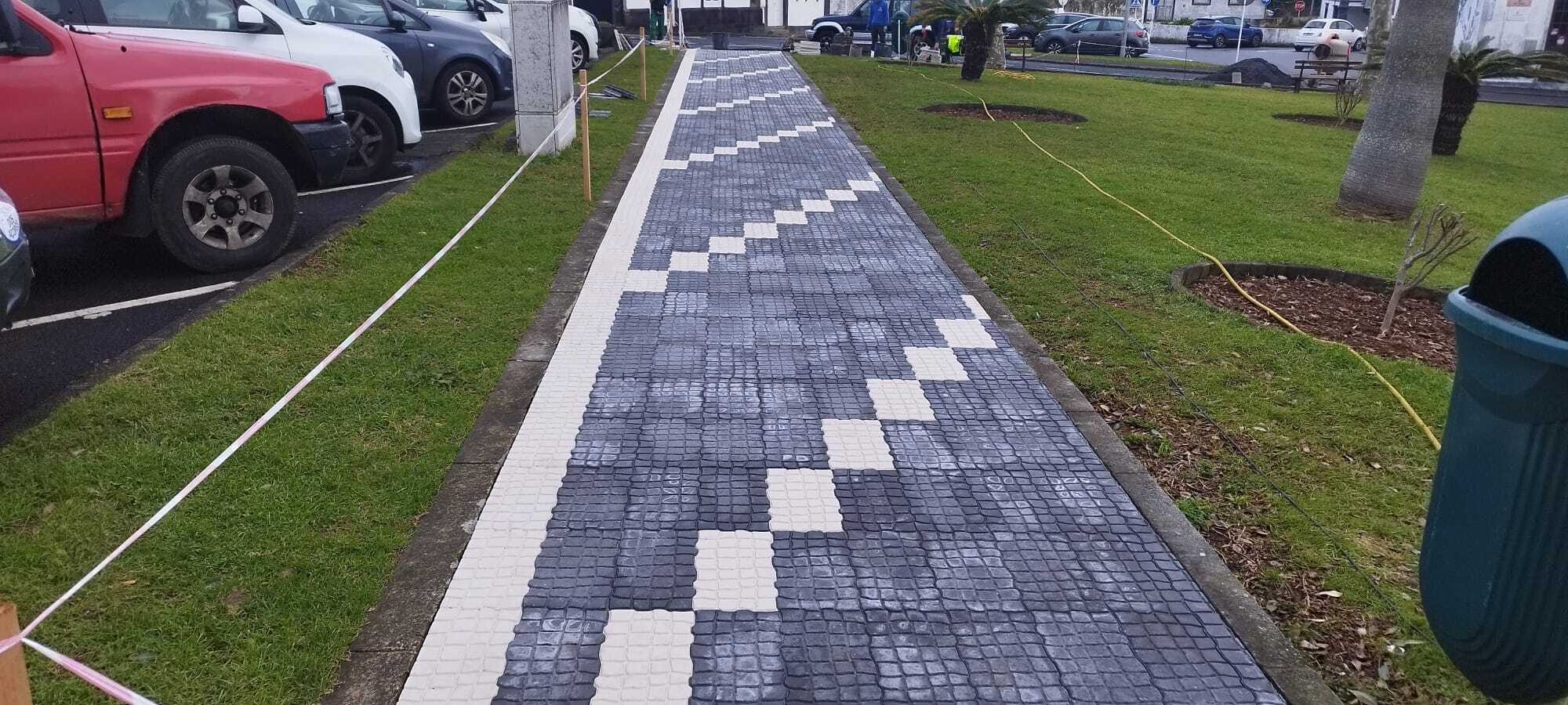 Nesta intervenção do Município é de salientar a maior qualidade dos materiais usados nesta substituição do pavimento e também as suas características de elevada resistência às intempéries e com maior eficácia no escoamento de águas pluviais, assim sendo assegurado o aumento de segurança na circulação pedonal e também o embelezamento dos passeios da Baixa da Vila.