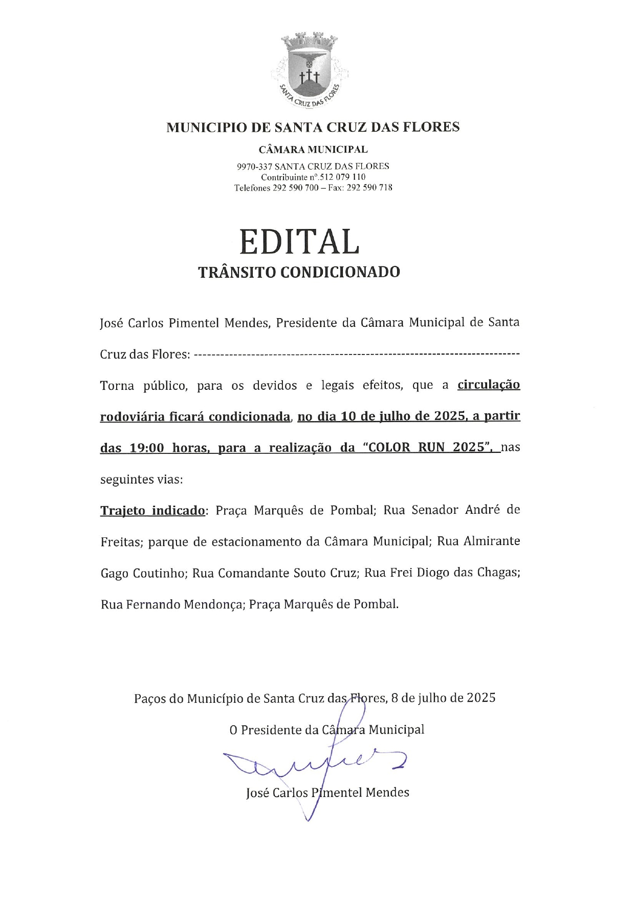 Edital - Trânsito condicionado dia 10 de julho