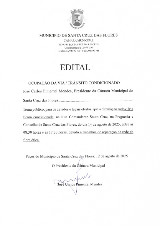 Edital - Ocupação da Via / Trânsito condicionado dia 13 de agosto