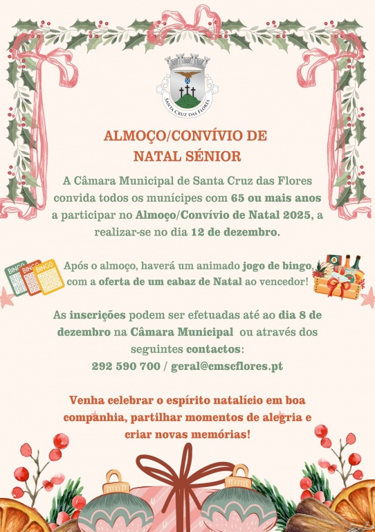 A Câmara Municipal de Santa Cruz das Flores convida todos os munícipes com 65 anos ou mais para o