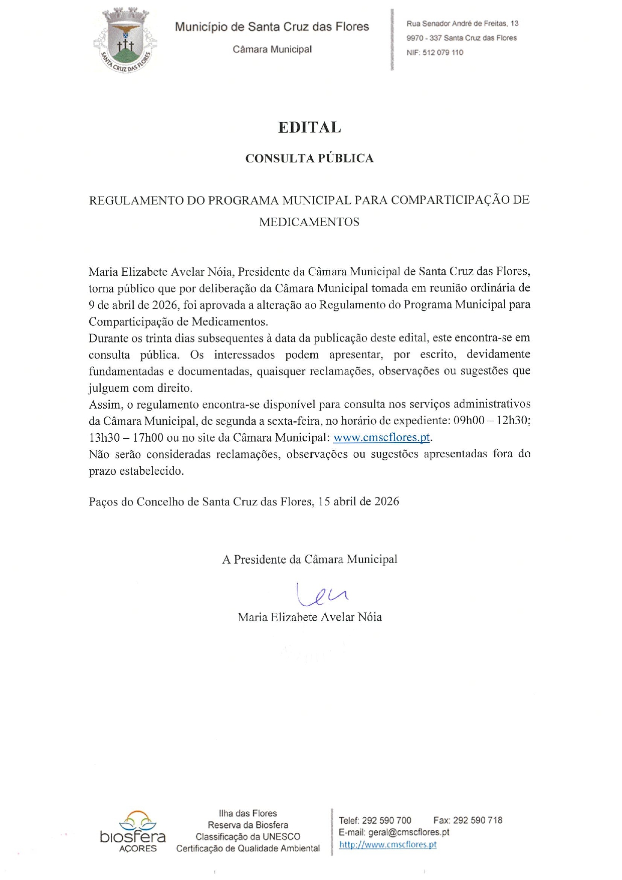 Edital - Consulta Pública Regulamento do Programa Municipal para a comparticipação de Medicamentos