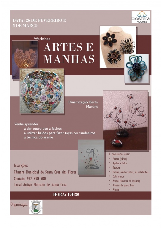 Venha participar neste Workshop de trabalhos manuais, nos dias 26 de Fevereiro e 5 de Março pelas 19H30